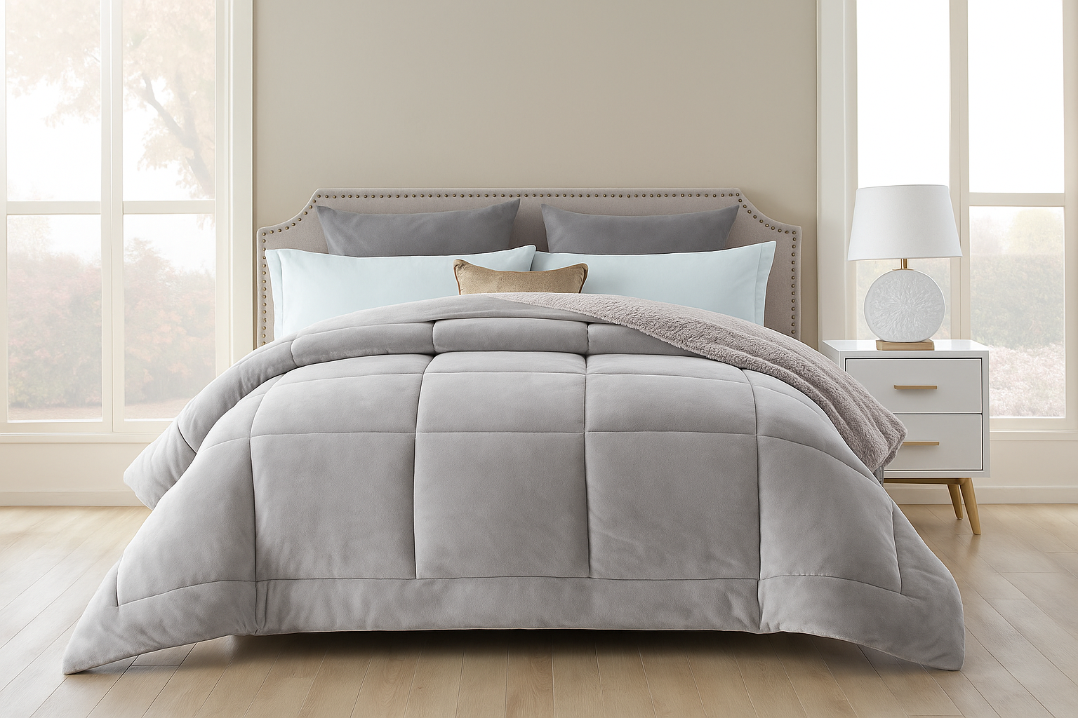 Rendi l'inverno più confortevole con la nostra trapunta invernale, pensata per offrire il massimo del calore e della morbidezza. Il lato superiore è realizzato in tessuto coral fleece di alta qualità, vellutato al tatto e piacevolmente soffice, mentre il lato inferiore in morbido sherpa effetto lana d’agnello garantisce un comfort avvolgente anche nelle notti più fredde.
