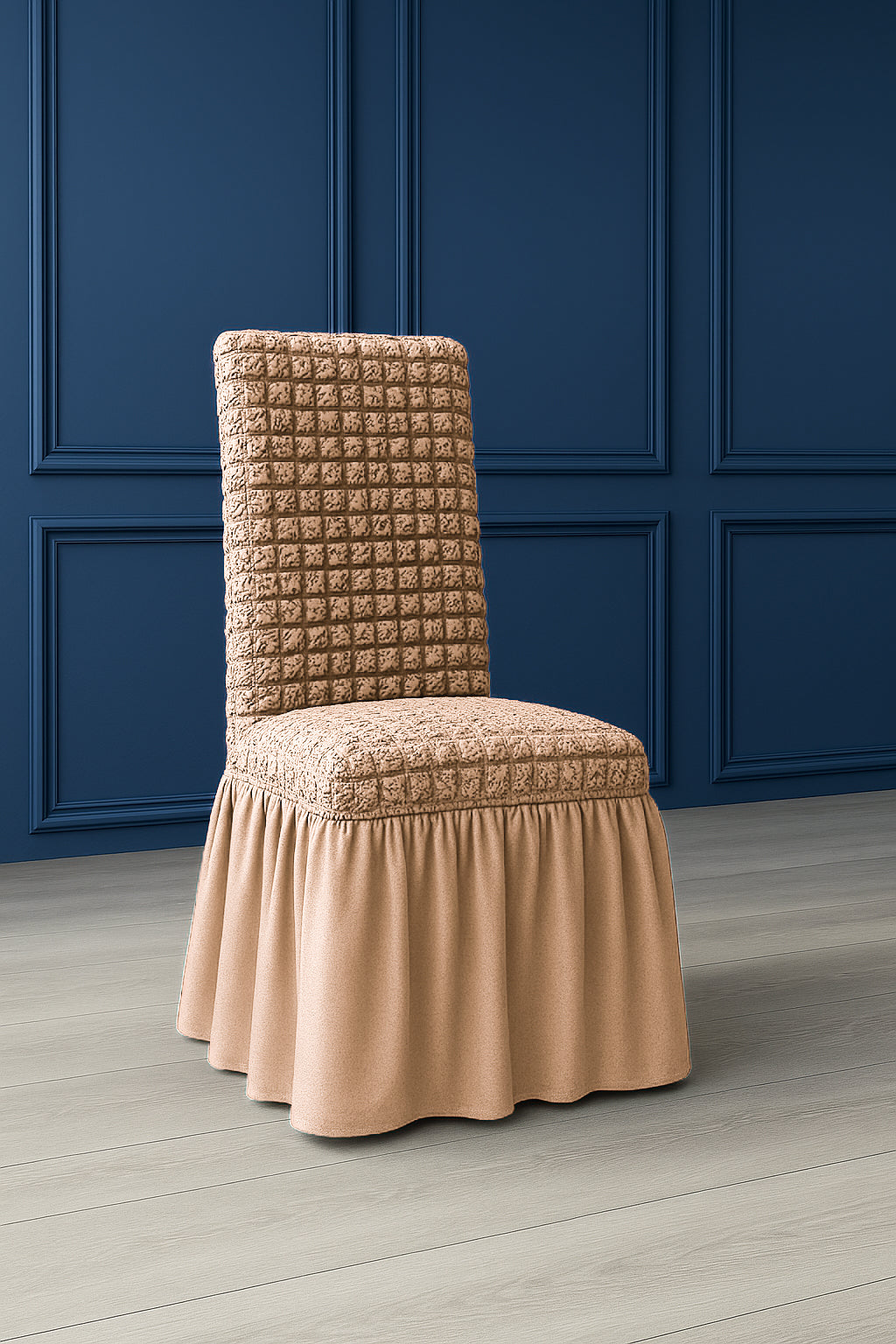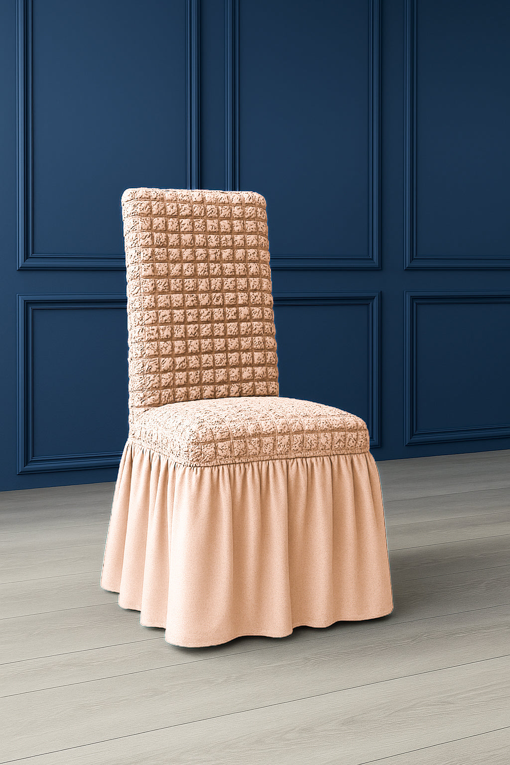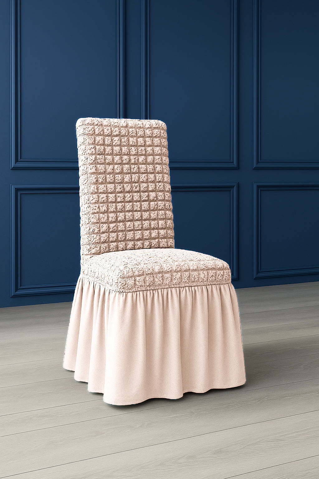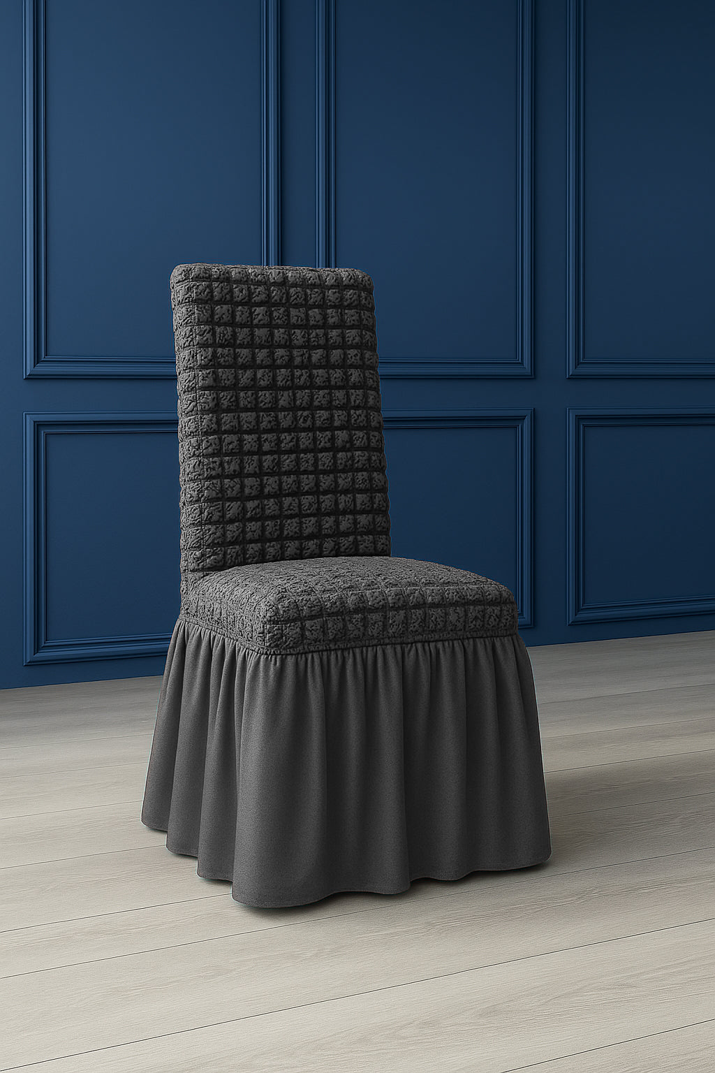 Innova lo stile della tua sala da pranzo con la vestisedia Fresia, elegante e pratica. Realizzata in tessuto elasticizzato con 97% poliestere e 3% elastan, si adatta perfettamente alla maggior parte delle sedie con schienale, offrendo una vestibilità comoda e senza pieghe.